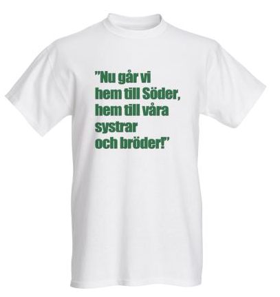 Det finns bara ett fåtal exemplar kvar av den populära tischan i begränsad upplaga med inledningsraderna till ”Hem till Söder”. 100:- är priset, mejla din beställning till lingostal@yahoo.com.